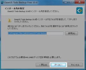 インストール先を選択します。特に指定がなければデフォルトでそのまま次へ