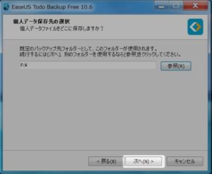 データのバックアップ先を選択します。指定がなければそのまま次へ