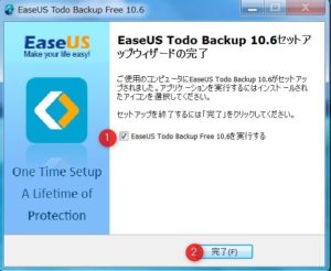 イージス トゥードゥー バックアップを実行するにチェックが入っていることを確認して完了