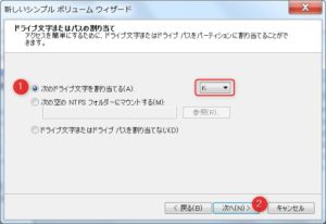 新しいSSDにアルファベットを振ってわかりやすくするだけなので自分の好きなアルファベットでも大丈夫です。指定したら次へ