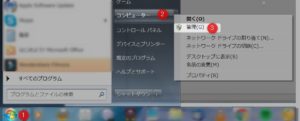 windowsボタンからコンピューターを右クリックし管理画面へ入ります。