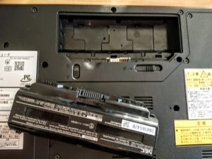 ノートパソコンの場合は万が一感電の恐れがあるのでバッテリーを外しておきましょう。