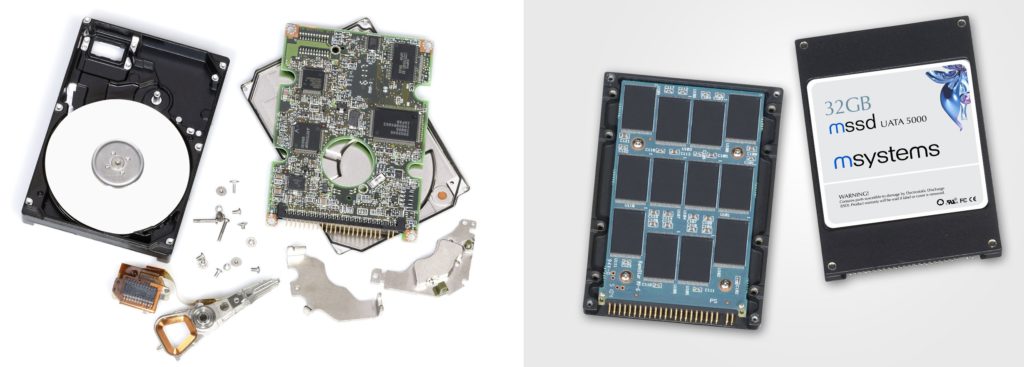 左側がHDD、右側がSSDの内部の構造になります。(Wikipedia参照)