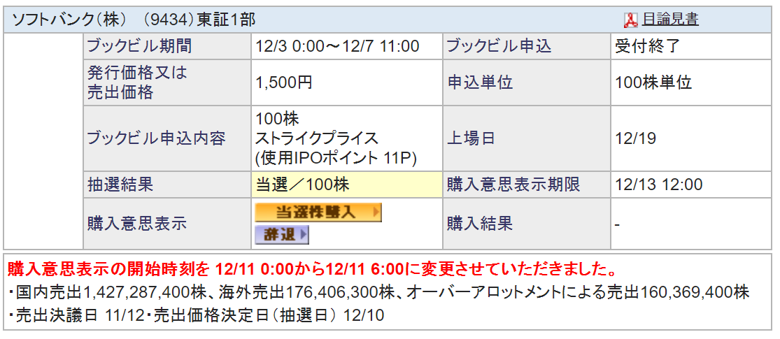 今回はタイトルにもある通りなんですが、ソフトバンクIPOに応募し、無事当選しました。